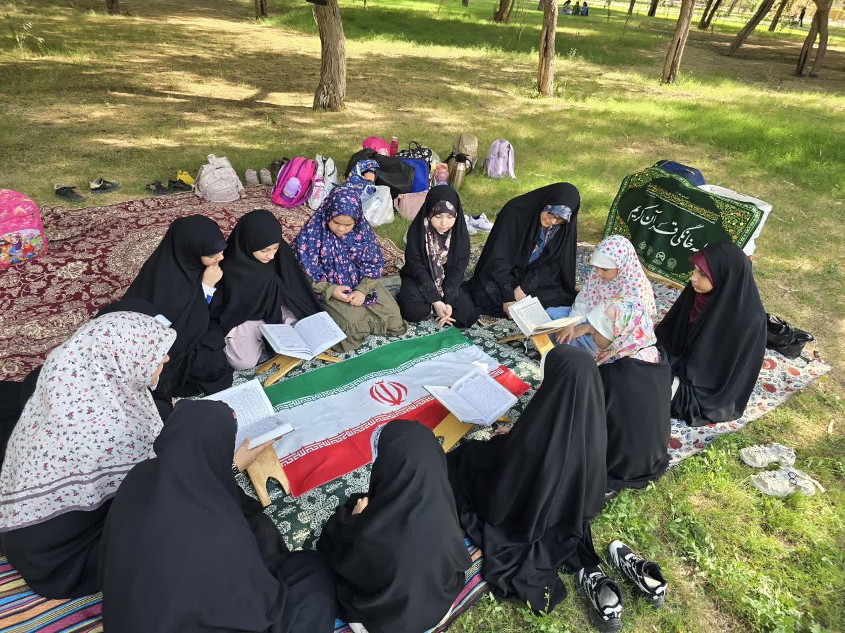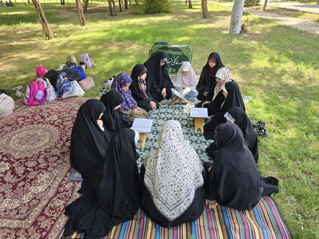 جمعی صمیمی از دختران قرآندوست در کنار آیات الهی